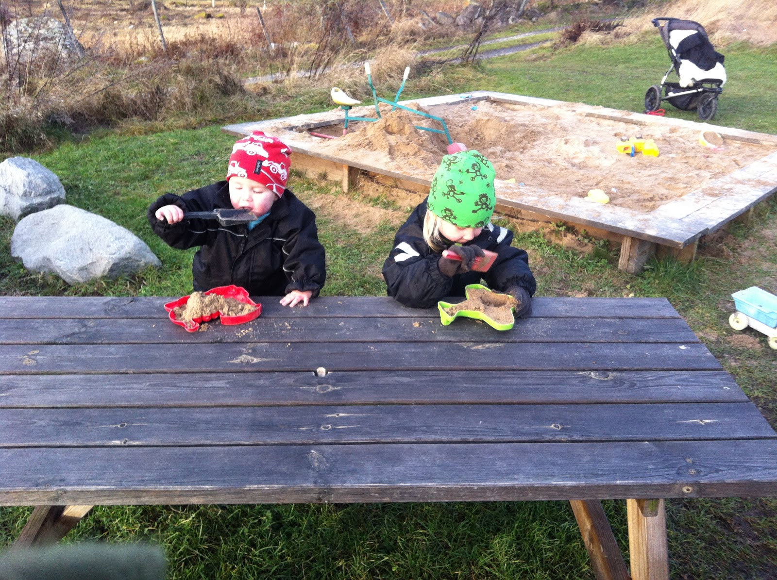 Vi hänger med vänner. Springer runt på lek- och buslandet.